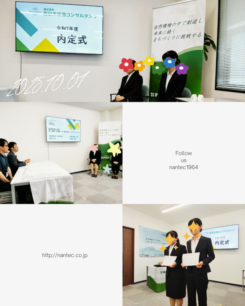 令和7年度 内定式 2025年10月02日 2025年10月1日に、内定式を開催いたしました。 2名の素敵な内定者をお迎えし、 内定証書授与や先輩社員との懇談会を行いました! 来年の春、お二人と働ける日を楽しみにしています^^